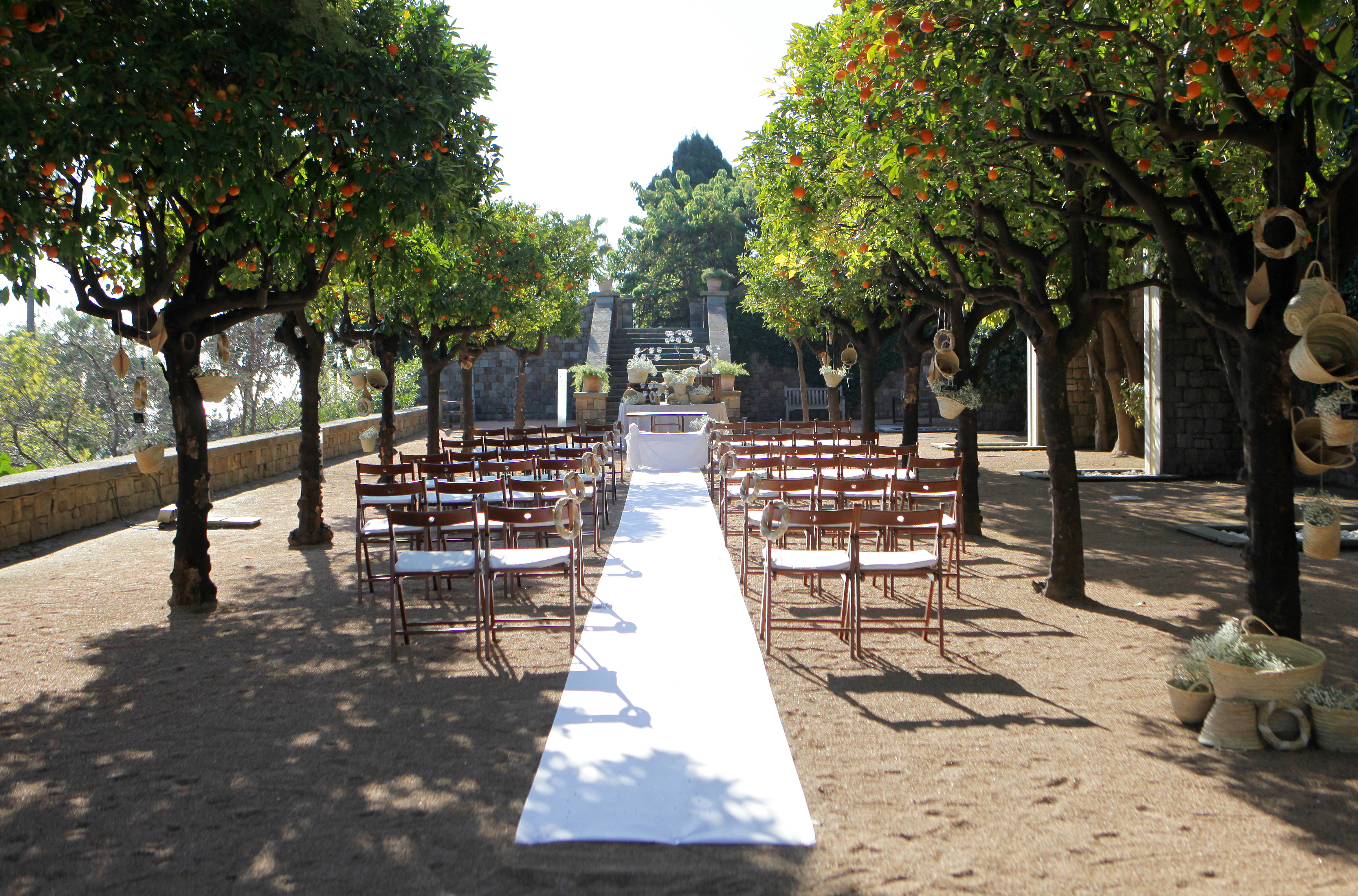 In case of wanting to hold the Civil Ceremony at Miramar Hotel, it could be carried out in the Orange Tree Garden. This patio has an authentic Mediterranean atmosphere created by the ancient orange trees that line both sides of the patio and by the magnificent views over the gardens, making this the ideal space for ceremonies or for various open-air catering services.