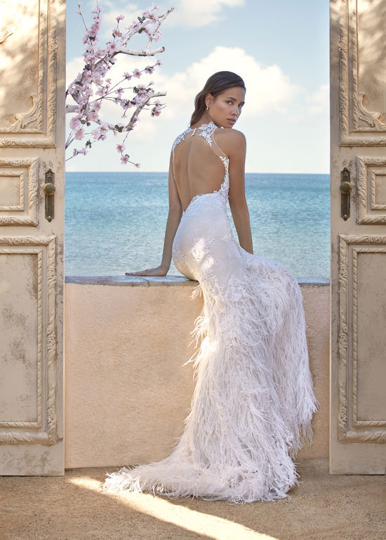 The Demetrios 2017 bridal collection was created with luxurious fabrics such as lace and feathers.