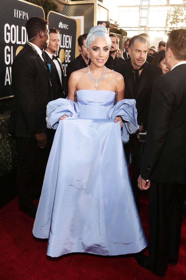 Lady Gaga had a stunning blue moment at the Golden Globes. The star chose to shine an ice-blue Valentino gown.
