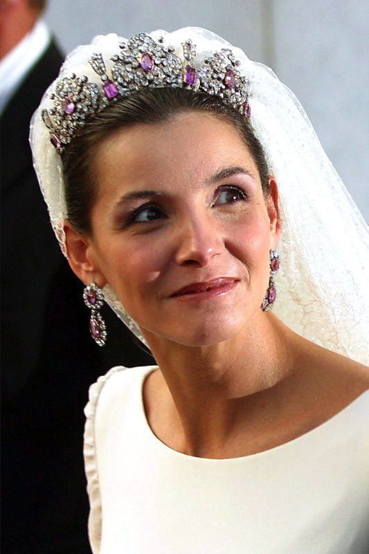Pink is such a pretty color to include in your bridal look! Clotilde Courau wore a tiara with pink topaz when she married Prince Emanuele Filiberto of Savoy in 2003. It might not be as bold as the others, but who doesn't look pretty in pink?