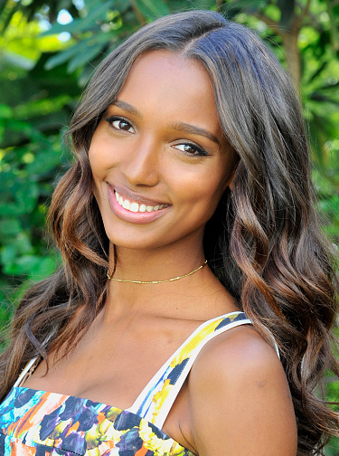 Jasmine Tookes' hair highlights are thin strands of one shade in lighter brown spread throughout, to create more volume.