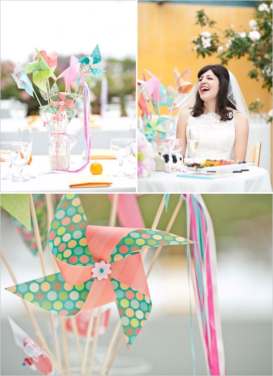 Windmills! Yes, the beautiful colorful paper toys you used to play with as a child can be a great wedding idea for your spring or summer wedding.