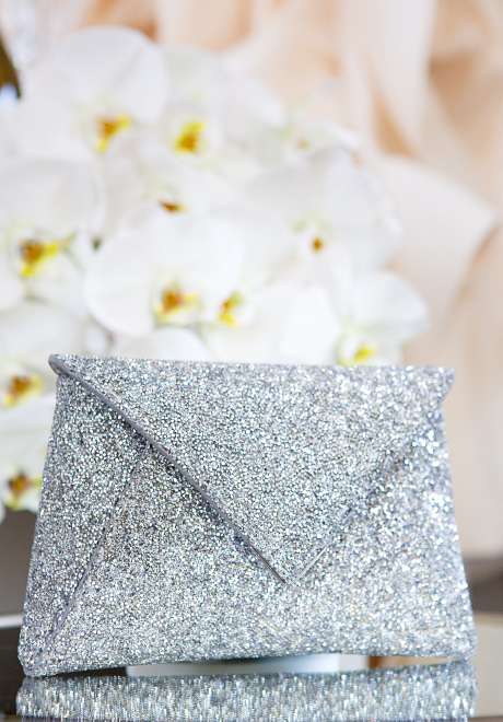 A small bridal clutch can hold your lipstick, tissue, and maybe some mints to keep your breath fresh.